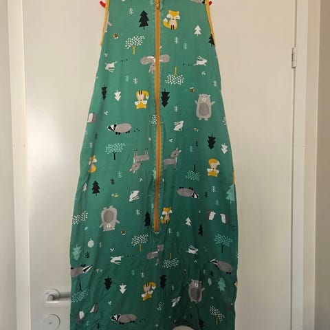 Puuvillainen ohut Slumbersac merkkinen unipussi koalakuvioilla. TOG 0,5 ja pituus 110cm, eli mahtuu vielä isommallekin taaperolle.