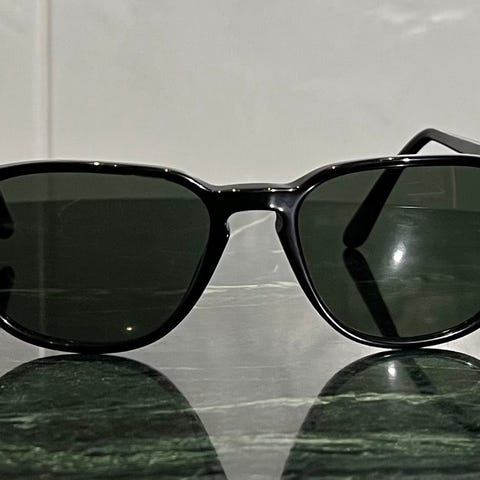 Persol unisex-aurinkolasit suorakulmaisilla ruskeilla muovikehyksillä ja tummilla linsseillä. Mukana kovakotelo ja puhdistusliina. Sopivat sekä naisille että miehille yleiskäyttöön ulkona ja autoillessa.
