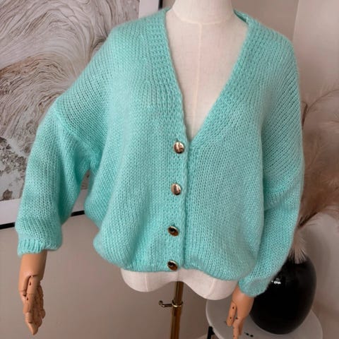 Turkoosi neuletakki jakku L