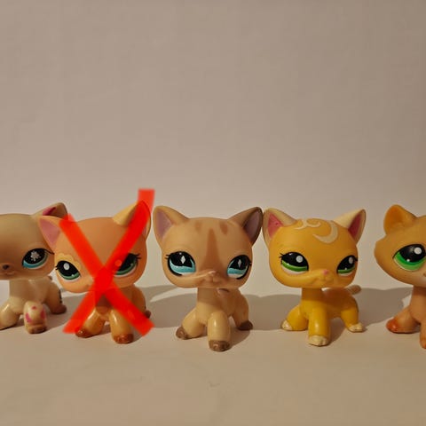 Littlest Pet Shop -kissanpennun lelufiguuri. Oranssi kissa, jossa vihreät silmät ja vaaleat yksityiskohdat tassuissa, korvissa ja hännässä. Muovinen pieni keräilyfiguuri, sopii leikkeihin tai kokoelmaan. Kuviointi päälaella, hyvä kuntoinen.