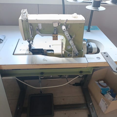 3-lankainen teollisuuskone pöydällä (60x120 cm). Valovirta.