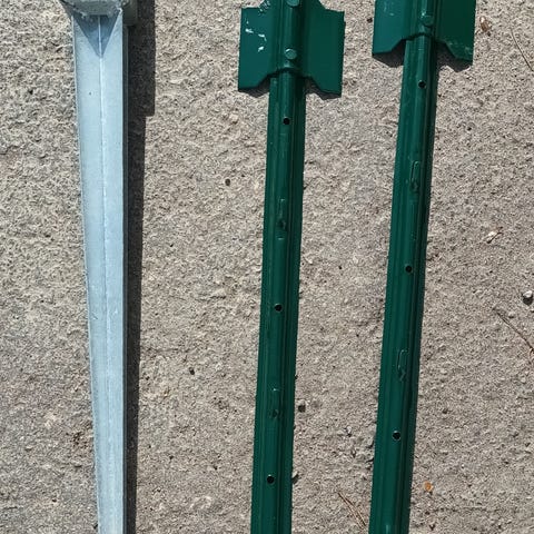 Myydään tarpeettomana 11 kpl hyvässä kunnossa olevia kestopuisia aitatolppia sinkityillä pilarinjaloilla. Maanpäällinen pituus 90 cm ja kokonaispituus 140 cm.