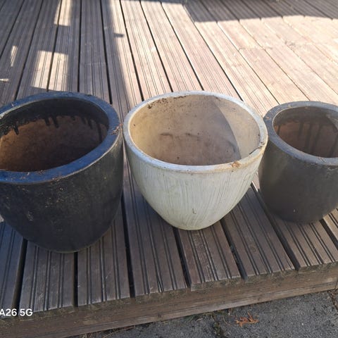 Myydään hyväkuntoinen kukkaruukku. Elävä vihertävä väritys. Sisällä pidetty 12cm istutusruukkua.
