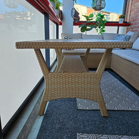 Polyrottinkituolit 6 kpl metallijaloilla, ruskea. Istuinosassa ja selkänojassa on punottu rottinkirakenne, joka tuo ilmavan ilmeen. Jalat ovat ohuet, mustat metallijalat. Sopii terassille, parvekkeelle tai sisäparvekkeelle katettuun tilaan.