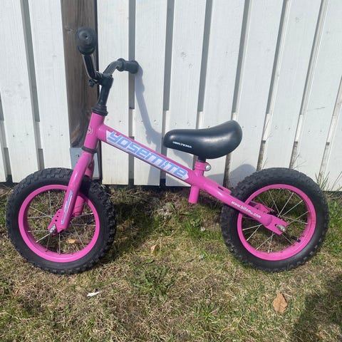 Kovassa käytössä ollut lasten potkupyörä tasapainon harjoitteluun.