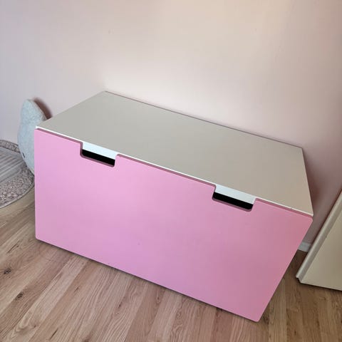 Lasten ihana vaaleanpunainen säilytysarkku. Mitat: korkeus cm42 , syvyys 37,5cm, leveys 60cm. Käytönjälkiä löytyy mutta on minusta ihan siisti ja käyttökelpoinen arkku vielä.ostettu jollyroomista. Koiratalous