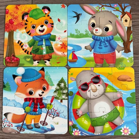 4in1 setti: palapelit, joissa 4, 6, 9 ja 12 palaa.