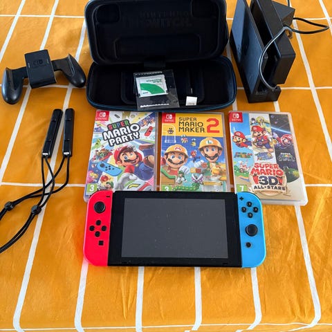 Mukaan kaikki tarvikkeet mitä kaupastakin ja alkuperäinen pakkaus yms. Kaikki tarvikkeet eivät näy kuvassa, mutta löytyy laatikosta.
