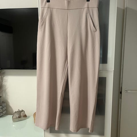 JDY housut naisille, koko S. Väri beige. Materiaali polyesteriä. Housuissa on väljä, suora lahje ja joustava vyötärö . Sopivat arkipukeutumiseen ja rentoon käyttöön. Uutta vastaavat, ei käytetty!! Koko S/30 . Myyn puoleen hintaan eli 25e.