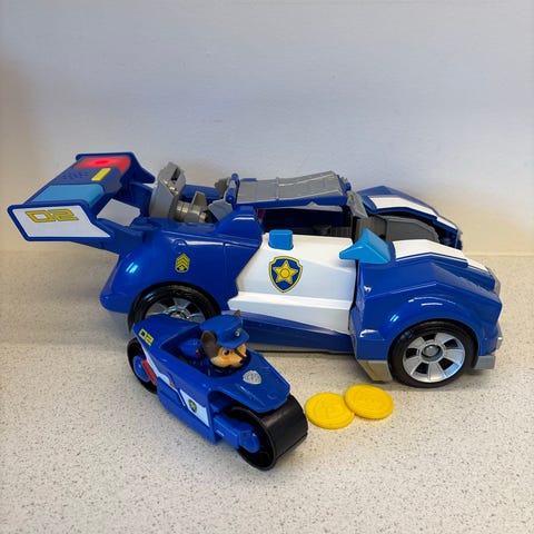 Ryhmä Hau Chase poliisiauto leluajoneuvo/moottoripyörä. Muovinen ajoneuvo, jossa on Vainu-hahmo kuljettajana. Auto jakautuu kahteen osaan ja 3-pyöräinen ajokki ponnahtaa irti takaa nappia painamalla. Hahmo melko kulunut. Voin laittaa upouuden hahmon kaupan päälle mukaan :)