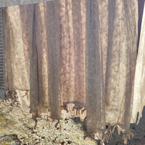 Vajaan vuoden ikkunalla olleet harsomaiset valoverhot.