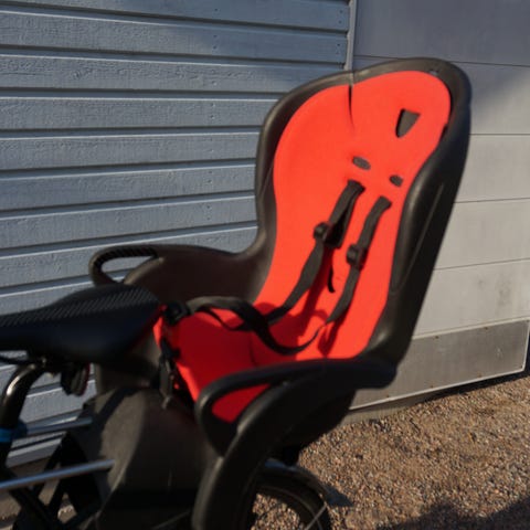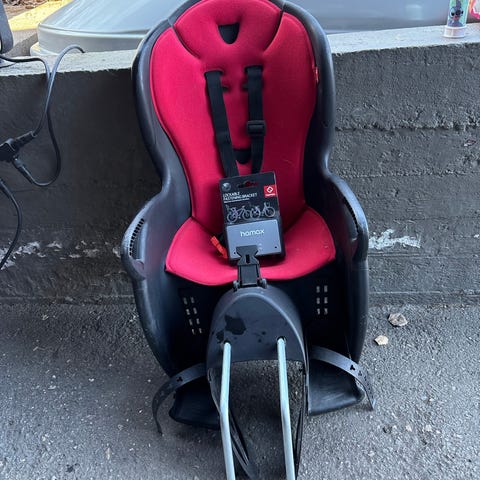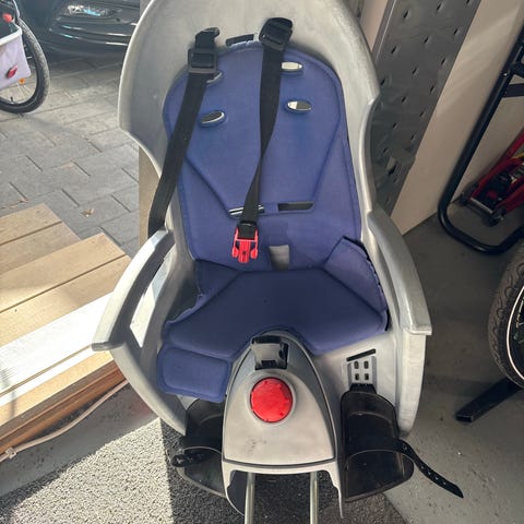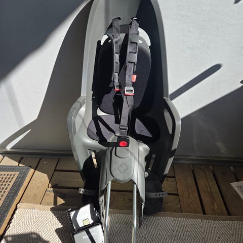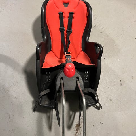 Hyväkuntoinen Hamax Caress Relax lastenistuin pyörään ja sen kiinnike.