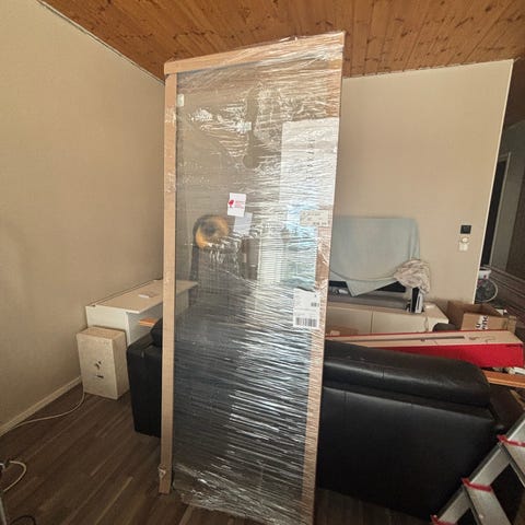 Myydään kuvan lasinen saunanovi karmeineen