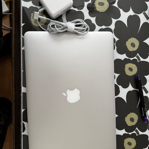 Käytöstä Macbook Pro vuodelta 2015 uudemman tieltä, täysin toimiva laite, ollut musiikin teko koneena, näytössä yksityisyyssuojakalvosta jäämiä, ei haittaa käyttöä, akku ei enään huippukunnossa (82,2/100%), mutta toimii ilman laturia jonkun aikaa, mukaan alkuperäinen applen laturi.