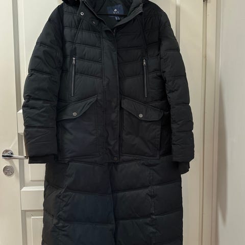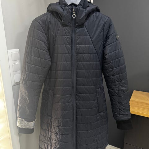 ELT pitkä toppatakki. Väri sininen. Koko-merkintä XXS (DE/USA) ja XS (GB/F/I), sopii hyvin pienikokoiselle käyttäjälle. Takissa on kiinteä huppu, täyspitkä malli ja tikattu lämpöeristys. Edessä vetoketju ja nappilista, useita vetoketjullisia rintataskuja sekä läpälliset etutaskut. Takana vetoketjut.