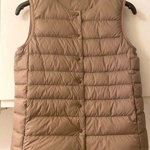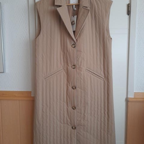 Tyylikäs Busnel toppaliivi, koko 40. Väri beige. Pystykaulus, edessä vetoketju ja sivutaskut. Sivuilla painonapit . Sopii kerrospukeutumiseen ja ulkokäyttöön viileämmillä keleillä.