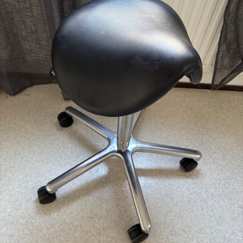 Myydään hyväkuntoinen satulatuoli. Korkeus ala asennossa 48cm ja ylä 65cm.