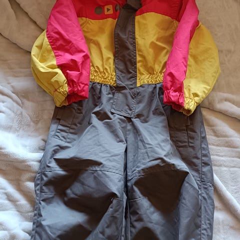 Villervallan haalari, ehjä. Rinnuksissa hieman liilaa väriä, joka ei taida lähteä irti.