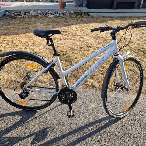 Naisten alumiinirunkoinen hybridi. Vaatii laittoa: kumit tyhjät, vaihteet pitää säätää, toisesta vaihdekahvasta osa kuoresta puuttuu, runkolukon avainta etsitään, vanteissa vähän heittoa.
