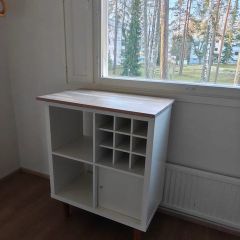 Koivun värinen ikea kallax "vanhaa mallia". Hyvässä kunnossa, paitsi yksi maalitahra joka kuvassa.