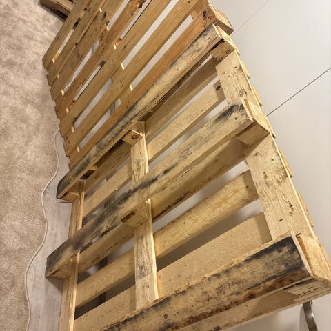 Puinen kuormalava. Sopii esimerkiksi tavaran varastointiin, kuljetukseen tai erilaisiin tee se itse -projekteihin ja piharakentamiseen. Käytetty, ulkona säilytetty lava, jossa näkyy käytön ja sään aiheuttamaa kulumaa. Kaikki kolme kerralla.