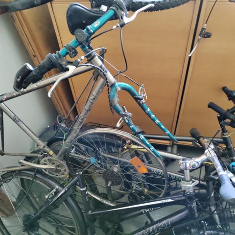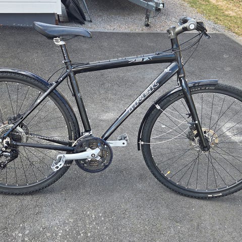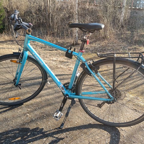 Trek 7500 FX pyörän runko, koko 22,5" / 51 cm. Väri sininen/hopea. Rungossa kiinni etukolmio kampiseteillä ja polkimilla, kampisetti Shimano. Mukana takavalolla varustettu satulatolpan joustoelementti. Sopii esimerkiksi hybridipyörän tai kaupunkipyörän rungoksi käyttäjän pituuden ja yhteensopivuuden mukaan.