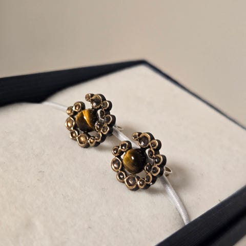 Hannu Ikosen suunnittelemat pronssiset Reindeer moss"- korvakorut. Korujen takaosat/stopparit ei alkuperäiset.