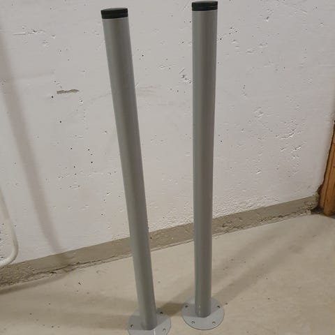 Valkoiset metalliset pöydänjalat. Jaloissa on pyöreä kiinnityslevy usealla ruuvinreiällä yläpäässä ja mustat päät alapäässä. Soveltuvat esimerkiksi pöydän tai työtason jalkoina käytettäviksi. Myydään useamman jalan eränä kuvien mukaisesti, 10kpl