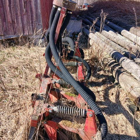 Kuvassa oleva, tilalla uudesta asti7 nyt lautasten hihna poikki/tai luistaa (maksaa ostopaikasta riippuen 80 -150) Muuten kone kunto hyvä. laakerit, viime kesänä uusittu kaikki vetohihnat, terät jne. Akseli vapaa kytkimellä. Siis portaaton palkin säätö/koneessa kulvavaihde. Päällyspressua ei ohjekirja sitä vastoin löytyy ALV 0
