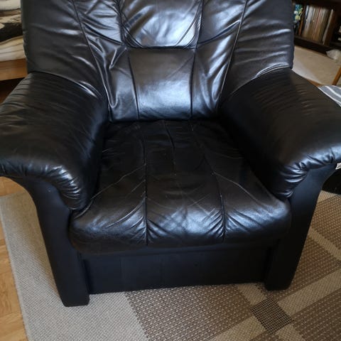 Nahka nojatuoli ,ollut kissataloudessa pieniä kynnen jälkiä on.