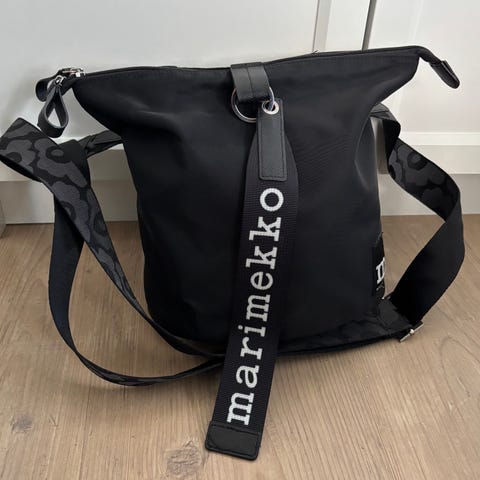 Marimekko kangaslaukku Carry All Solid olkalaukku, kuin uusi. Laukussa on vetoketjusuljenta, mukana erillinen Marimekko-suojapussi säilytystä varten. Laukun korkeus 25cm.