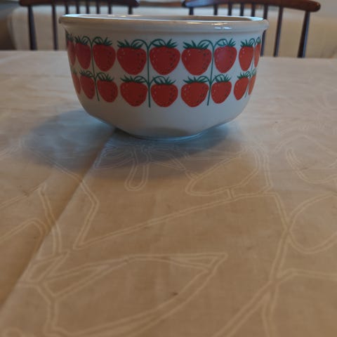 Myydään ehjä Arbia Pomona Mansikka purkki. Purkissa tai kannessa ei ole lohkeamia, mutta tummentumia kylläkin.