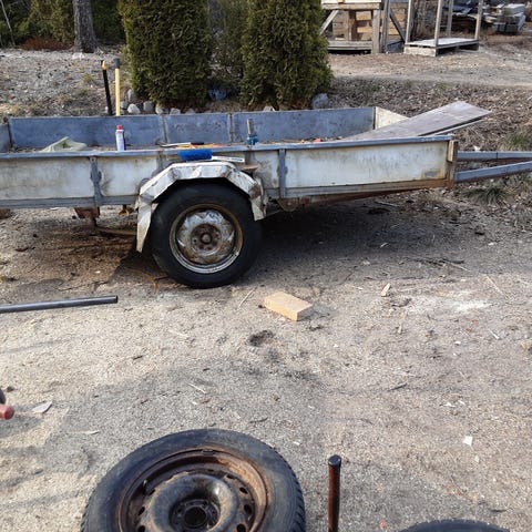 Polar merkkinen lähes käyttämätön peräkärry, irrotettavat etu ja perälaidat, kippi sekä kuula vetopää.