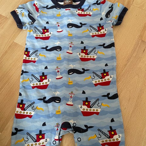 H&M lasten lyhythihainen haalari, koko 86. Beige pohjaväri ja vaaleanruskeat raidat. Materiaali puuvillaa. Unisex-malli, jossa lyhyet lahkeet ja hihat. Edessä nappikiinnitys ja pieni rintatasku. Sopii arkeen ja leikkiin noin 1,5-vuotiaalle lapselle koosta riippuen.