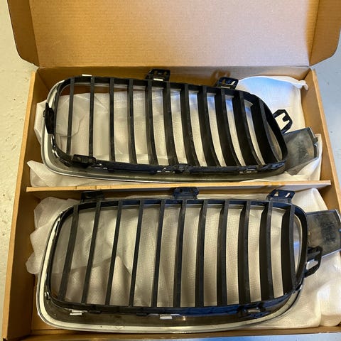 BMW F32, F33, F36, F80, F82 M4-Look kiiltävän mustat munuaiset. Ostettu Tuningkaupasta 2024, muttei koskaan tullut asennettua paikoilleen eli ovat uudet ja käyttämättömät. Toinen edelleen suojamuovissa. Tuningkaupassa tuotenumero 65114, joten lisätietoja siellä. Nouto Jyväskylän alueella sopimuksen mukaan.