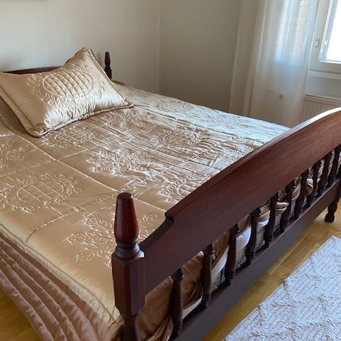 Hyvässä kunnossa ja vielä kasattuna, parisänky, tukeva ja massiivipuu, patjan koko 200x160