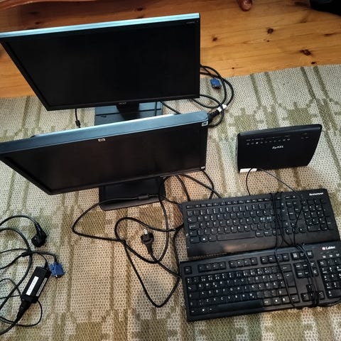 2 Acer näyttöä ja Lenovo näppäimistö