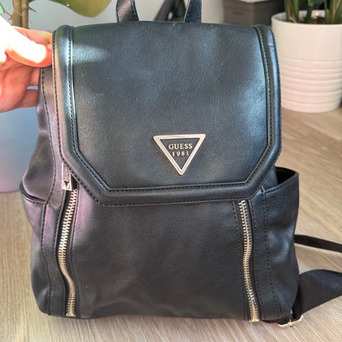 Myydään hyvässä kunnossa oleva guess reppu. Toisen olkaimen nahka hieman rispaantunut.