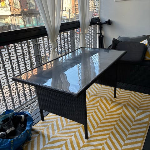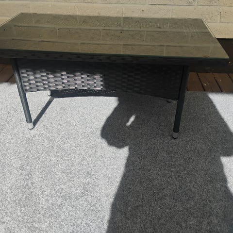 Myyn tarpeettomana erittäin hyväkuntoisen parvekepöydän, koko 68cm x 68cm. Polyrottinkia, tukeva jalka keskellä.