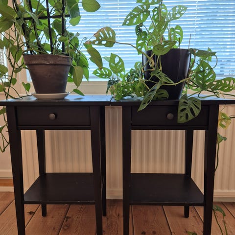 Hyväkuntoinen Puinen Ruskean Värinen Kukkapöytä ,Kahdella Hyllyllä/Tasolla