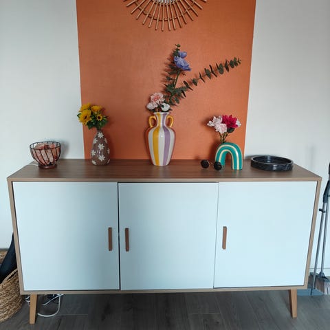 Kohtuu hyväkuntoinen valkoinen senkki, ei näkyviä naarmuja eikä kolhuja. Myydään muuton alta pois.