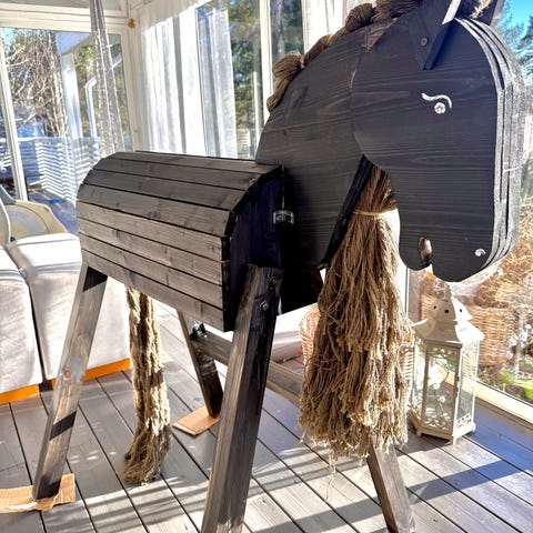 Rakas perheenjäsenemme Thunder "Tunska" puuhevonen on vailla uutta kotia.