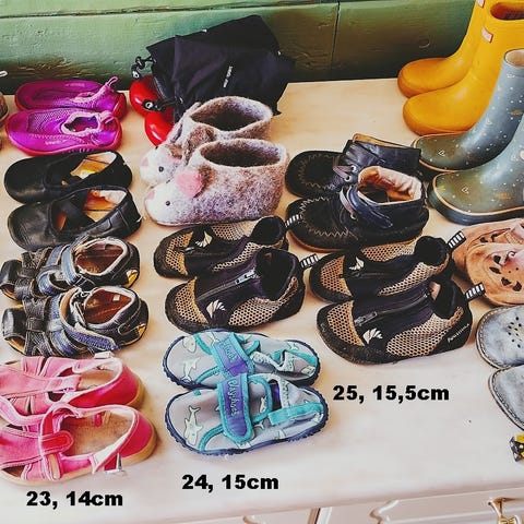 Tytölle/pojalle/unisex paljasjalkakenkiä joka kokoon ja säätilaan.