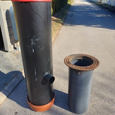 Käyttämättä jäänyt vanhempi Uponorin sadevesikaivo.