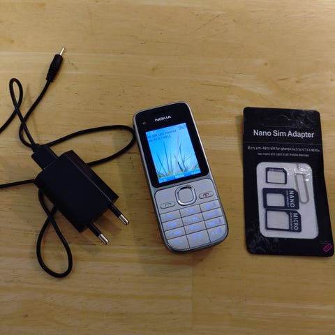 Nokia C2 Puhelin Laturilla ja SIM-adapterisarjalla