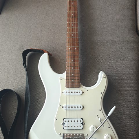 Siistikuntoinen Yamaha. 2 sinkkumikkiä ja tallassa humbucker puolituksella joka on tonepotikassa. Leppärunko ja vaahterakaula.
