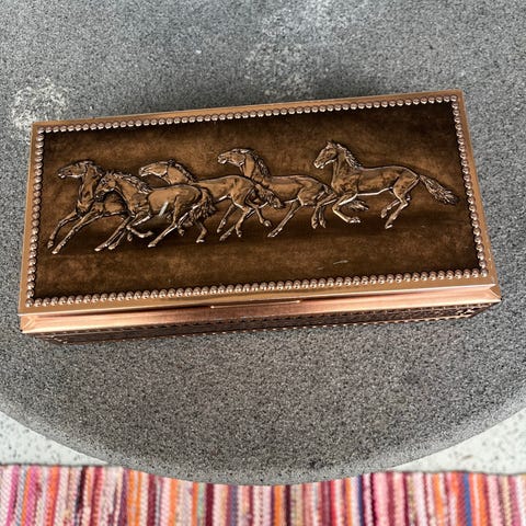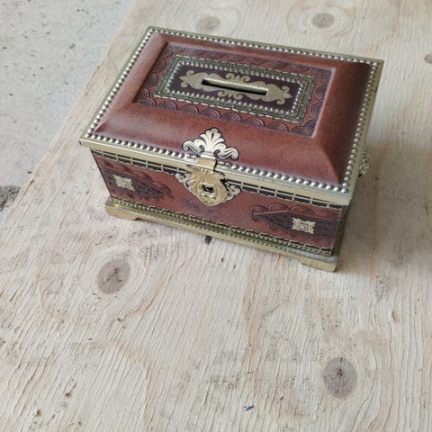 Myydään kaunis vanha peltirasia, Chymos? Leveys 20cm, korkeus 12cm ja syvyys 13cm.
