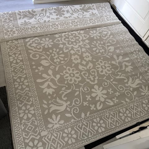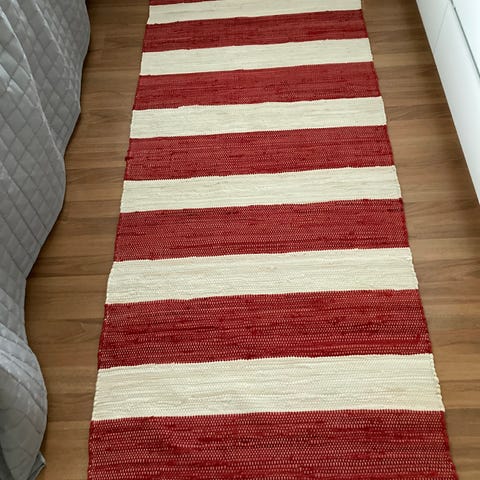 Laadukkaat muovimatot, mutta toista ehti vierailulla ollut koiranpentu maistelemaan. Mahdollisesti voisi korjata kuumaliimalla tai pikaliimalla? Lyhyempi matto on ehjä. Mattojen koot 150x69, 200x67. Alunperin matot ovat olleet yhtä leveitä 70cm, mutta nähtävästi ovat pesuissa hieman kutistuneet. Yhteishinta, pidemmän saa halutessaan kaupan päälle.