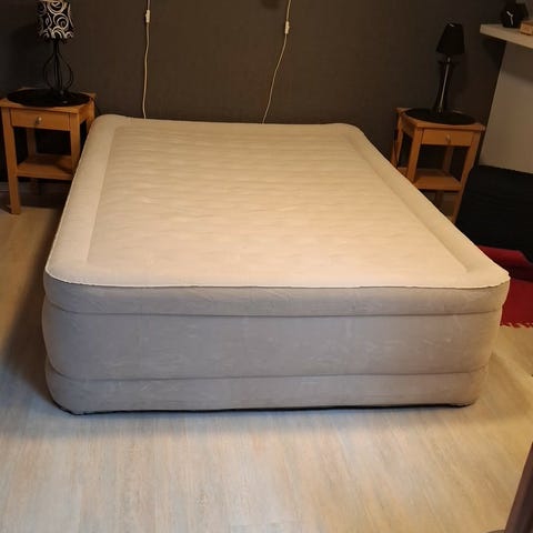 Myydään ylimääräisenä, joitakin vuosia vanha, varmaan alle 5 kertaa käytetty. Tuntuu pitävän ilmat sisällään. Integroidun pumpun täyttö on mukava, ei tartte itte pumpata.