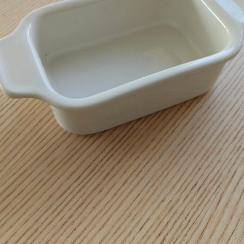 Käytössä ollut, mutta edelleen siisti, ja ajaa asiansa tarjoiluvuokana.